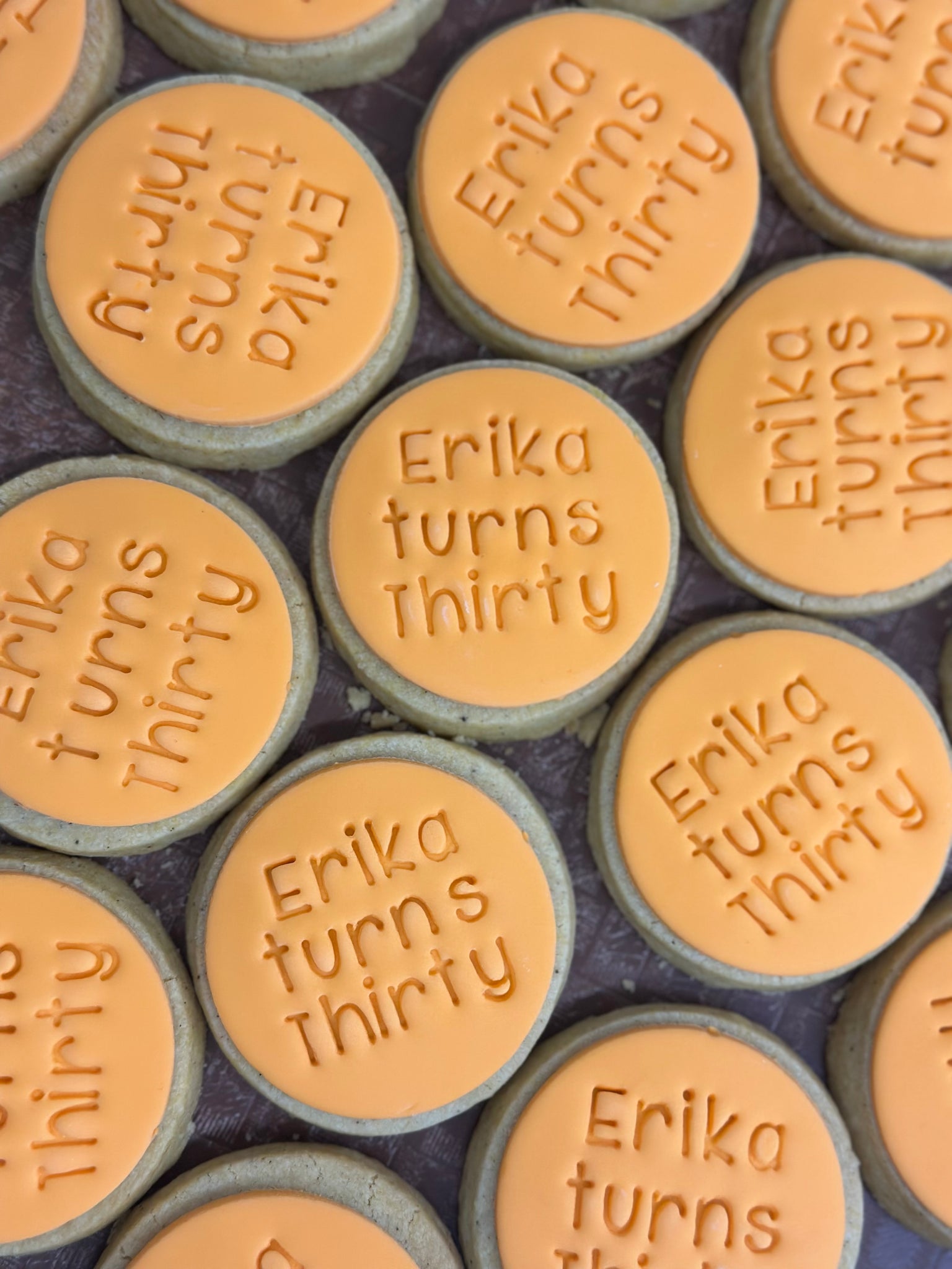 Cookies are then covered with Pettinice fondant and stamped with a message of your choice.